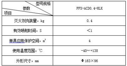 發動機艙用超細干粉自動滅火裝置主要技術參數